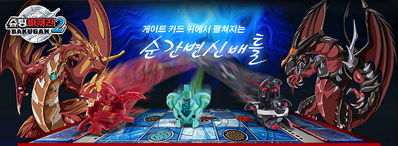 ‘바쿠간’은 동명의 TV애니메이션 ‘슈팅바쿠간2’에 등장하는 주인공들이 대결할 때 사용하는 몬스터로 변신하는 액션 변신볼을 말 한다. 불속성, 물속성, 흙속성 등 6개의 속성으로 구성된 바쿠간은 각각의 속성과 파워레벨을 가지고 있으며, 게이트 카드위에 던지면 펼쳐지며(팝아웃) 몬스터로 변신한다.