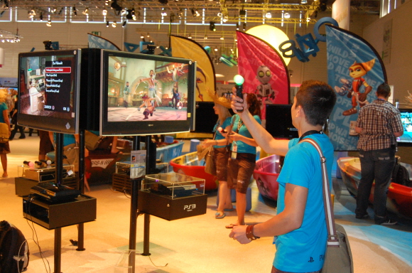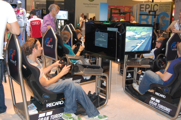 SCEE 부스에서 PS무브와 `그란투리스모` 를 즐기는 관람객들