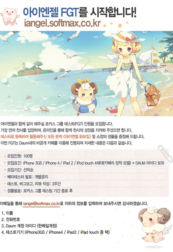 테스터 신청과 자세한 정보 확인은 공식 홈페이지(http://iangel.softmax.co.kr)를 통해 가능하다.