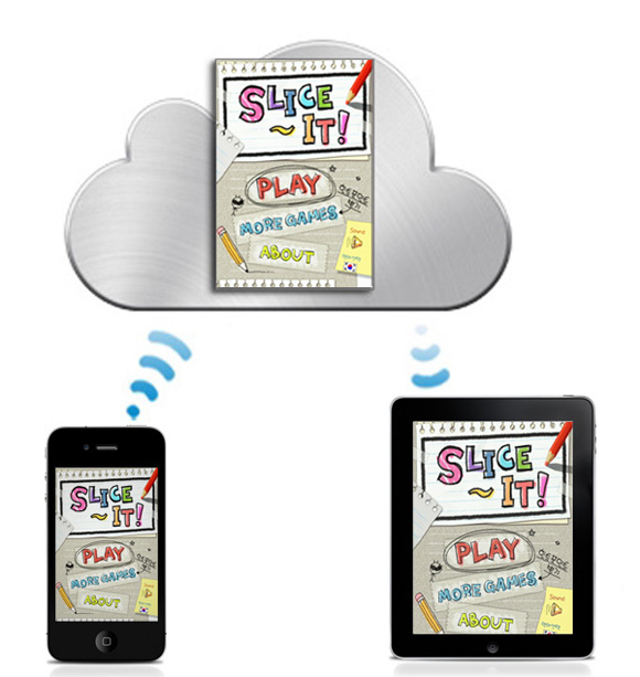 ‘슬라이스 잇’ 과 ‘타워 디펜스: 로스트 어스 HD’ 의 iOS5 유니버셜 버전은 게임의 진행 상황과 기록을 그대로 ‘아이클라우드’ 를 활용해 저장해 두었다가 유저들이 아이폰에서 아이패드로 혹은 아이패드에서 아이폰으로 다시 게임을 이어서 즐길 수 있다. 디바이스의 경계가 사라지며 다양하게 유저들의 편의에 따른 기기를 이용해 저장된 게임 데이터를 불러와 즐길 수 있다는 점이 크게 부각된다.