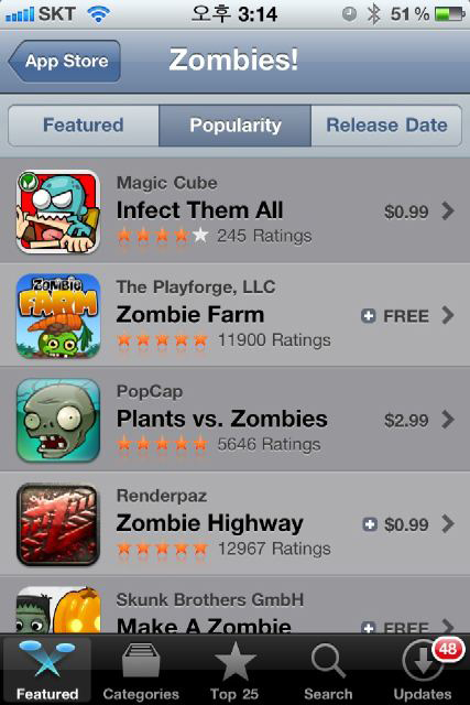 이 글로벌 아이폰 앱중에서 가장 유명한 좀비 게임으로 등극되었다.